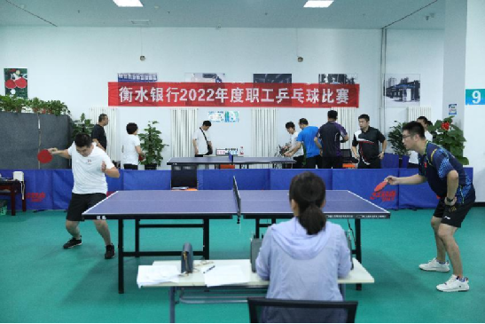 为了迎接党的二十大胜利召开,增强职工爱党、爱国的精神,增强团队的凝聚力、战斗力,激发团队积极向上的精神,加强职工之间的交流合作,丰富职工业余文化生活,行工会于7月23日在衡水市奥体中心成功举办了“衡水银行2022年度职工乒乓球比赛”。