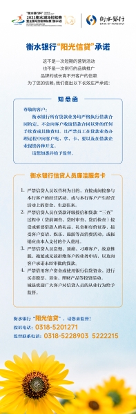衡水银行号召全体员工将《知悉函》和“衡水银行信贷人员廉洁服务卡”转发微信朋友圈,邀请广大客户对信贷业务中的违规行为进行监督。